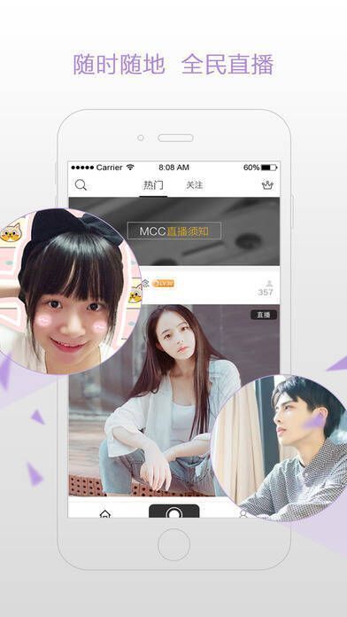 MCC直播app聚焦红人培养,致力于创造红人,是一款高颜值的手机直播平台。
