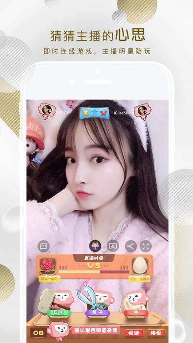 5、【独创游戏】有独创的猜拳等小游戏玩法,能和主播在线互动,若主播输了还会接受惩罚。