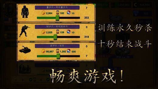 从希腊罗马时期的弓箭手到现代战略特种兵,搭配坦克、飞机、核武器,精心锻造最强精英部队。参与全球国战,占领世界城市获取王国特权,组建超强联盟,主宰世界。游戏轻松畅快,永久0秒训练,10秒快速战斗,商店加成高达2000%,还有无数兵种加成,赢取全球任务奖励,更多精彩等你发掘。