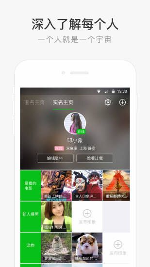 【匿名聊天】除实名社交,还有匿名聊天功能,到朋友主页点击即可匿名畅聊。