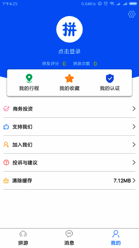 拼游是专为旅游爱好者打造的旅游结伴信息互动平台。在这儿,你能发布旅游行程来召集驴友一同出行,也能挑选心仪的行程加入。通过结伴组队,既能分摊旅游成本、共享优惠,还能享受同游的快乐,结交新朋友。