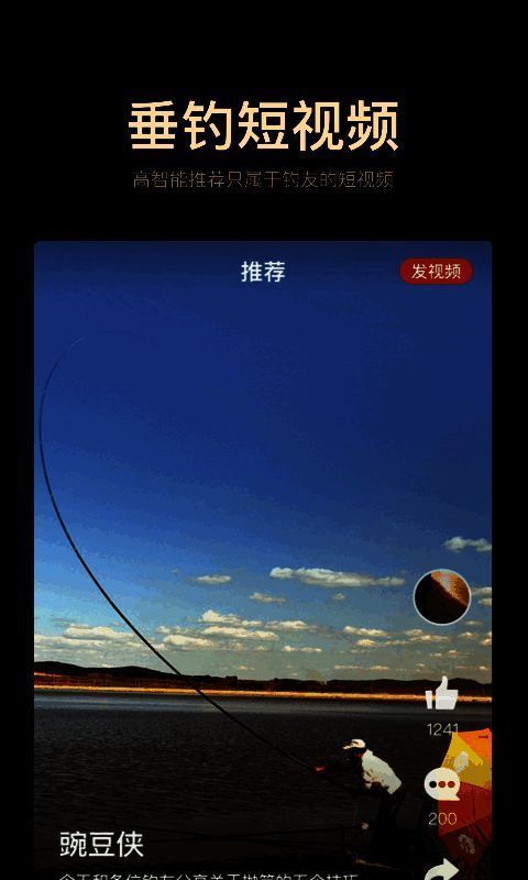【垂钓短视频】平台承载生动、精彩、神秘的视频内容,通过高级智能推荐,把你感兴趣的视频推送到手中。你也能发布精彩视频分享给更多钓友。