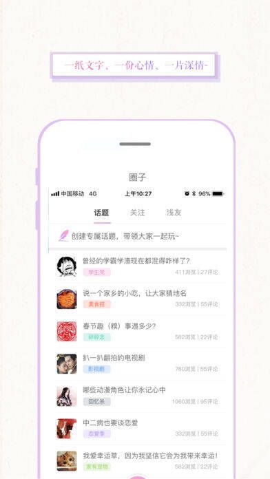 3、浅友:在 app 里关注喜欢的文字和人,就能匿名私聊。
