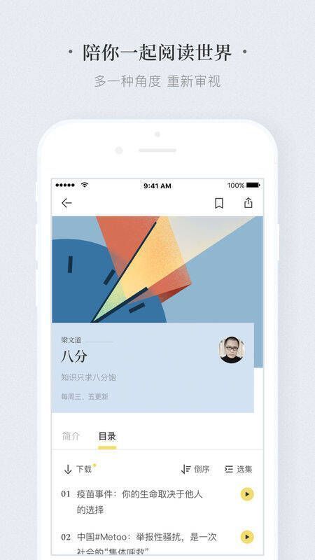 3、此外,全新制作了梁文道的音频节目《八分》,还有看理想编辑团队精心打造的“电台杂志”,同时提供所有看理想系列视频节目(一千零一夜、圆桌派、局部、听说)的音频版本,以声音搭配图文,让你感受知识的乐趣。