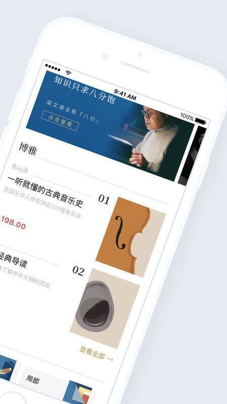 1、「博雅」频道:提供一系列提升阅读、思考和审美能力的长期培养方案,邀请到顶尖的知识摆渡人与你相伴。首期上线的有杨照的《中国经典导读》以及焦元溥的《一听就懂的古典音乐史》。