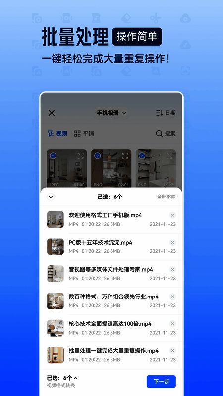 4. 视频转换器:可转换视频格式,支持MP4、MOV、3GP、3G2、MPEG、WMV、FLV、AVI等输出格式。