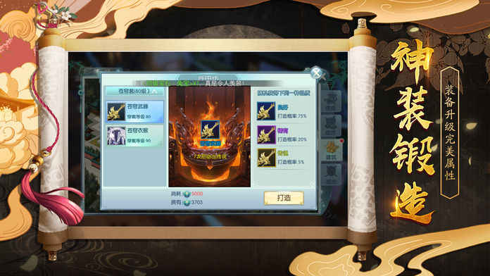 该游戏突破经典玩法的束缚,在万人宏伟地图上,处处都是战场。皇城争霸、神魔之战、通天宝塔、全民乱斗、战盟争锋、晶石矿场等众多PVP与PVE玩法,让PK变得简单、粗暴又刺激!七大副本与自由交易系统能让玩家迅速成长,快速投身到这场劲爆的修仙世界中。在这里,你不是一个人在战斗,你就是神!