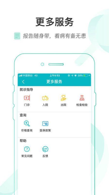2、报告单查询:在家就能获取报告单,无需往返医院查询、取单,看病更有准备。