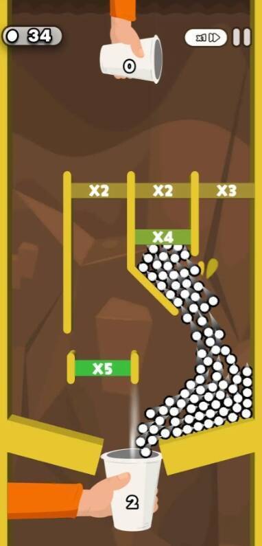 在战斗页面,移动纸杯接住掉落的球,为英雄补充血量。