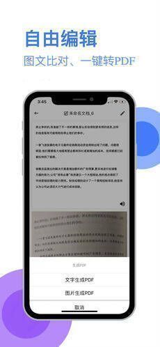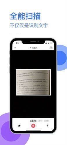 《全能扫描王》是一款功能强大的专业识别软件。打开手机上的全能扫描王 app,不管是把图片转化成文字,还是将文字生成为 PDF 文件,都能轻松实现。