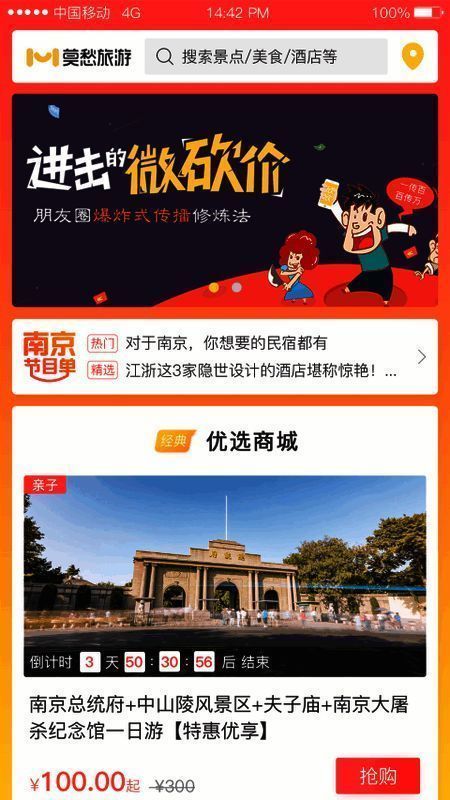 莫愁旅游着重推进“南京CityCard”项目,借助智能化统一核销方式,整合景区、酒店、餐饮、交通、演艺等旅游要素,结合南京全域旅游集散体系建设,以“一机一码游金陵”为呈现形式,达成南京旅游的“信息、预订、服务”一网通。上线后,平台会开展“莫愁超级优惠季”“南京旅游攻略征文”“最美南京摄影比赛”等活动吸引和回馈用户。