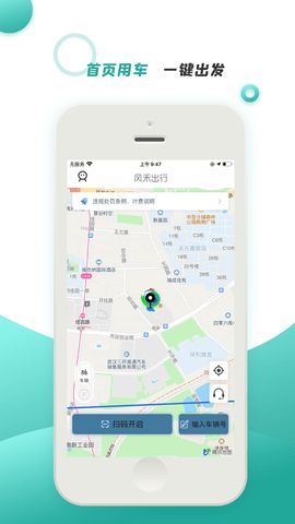 首页设有直接的用车功能,一键租车,出行轻松。能记录骑行路线,方便随时查看。登录方式简单,微信用户一键即可登录。