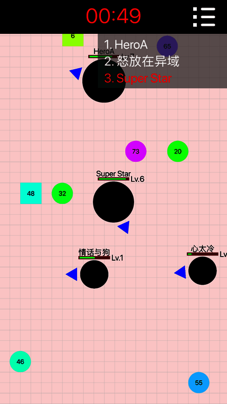 游戏有时间竞技场和无限吞噬两种模式。时间竞技场有时间限制,无限吞噬则是看谁能活到最后。