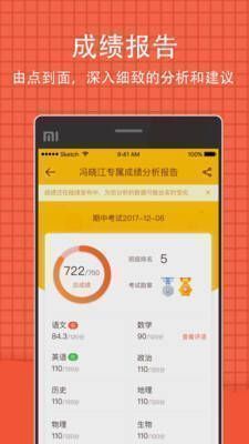 好分数APP是为使用“云校 + 阅卷”产品的学校学生打造的查分看卷移动应用。学生查分、查看试卷等基础服务永久免费。此外,该APP还为全体学生免费提供大学信息,它以初高中学生的平时考试成绩为依据,通过大数据分析,预测学生当前成绩能考上的大学,或与目标大学的差距,以此激励学生努力提升成绩。