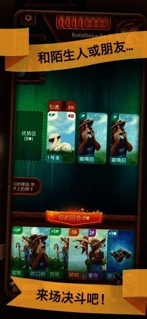 《夺羊大战》是一款围绕放牧和偷窃羊群展开的多人策略纸牌游戏。游戏目标清晰:台面上有三只羊,你只要将两只羊带回家或者偷走,就能赢得游戏。