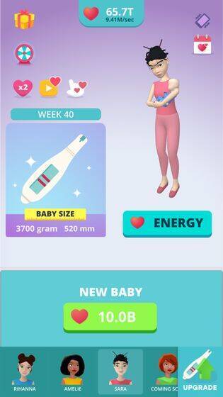 只需不断点击,就能赢得怀孕妈妈的喜悦,助力您抵达众人期待的终点——宝宝诞生,太棒啦!此刻,在玩这款世界顶尖的闲置怀孕游戏时,尽情享受吧。