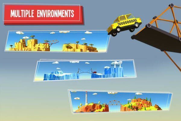规划阶段,游戏呈现简洁的2D界面。你需在此挑选最佳建桥材料,构建最具弹性的结构。每一关都是复杂谜题,得用最有效、最好的办法去解决。别害怕尝试,你可以大胆发挥想象,搭建出看似离谱却可行的桥梁,无论哪种方式都趣味十足。