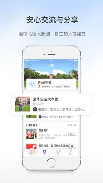 《万圈》是一款专门为校友打造的实名分享平台。该平台借助交叉验证和人脉关系搭建信用体系,为用户提供可靠、可信的社交途径以及高效精准的知识分享渠道,使用户能够安心交流,高效解决问题。