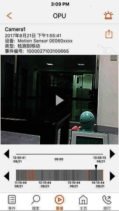 应用会记录安保系统记录的事件,可随时在应用里回看;