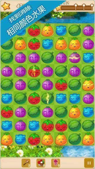 1、画风清新,有可爱萌趣的小动物、高耸入云的欢乐树和诱人水果,构建出完美画质的消除世界;