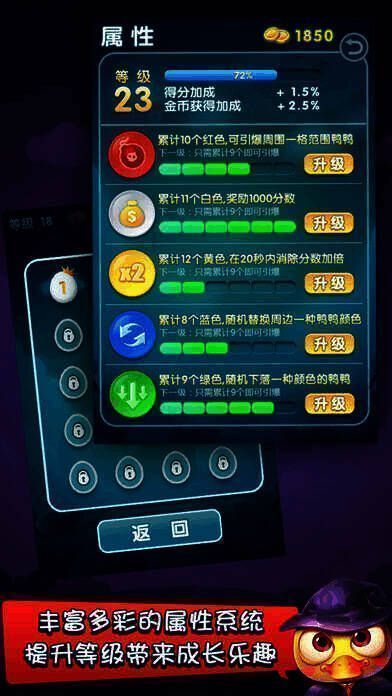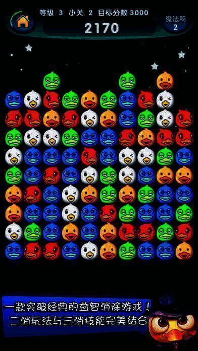 《魔幻鸭》作为创新的休闲益智游戏,首次实现二消玩法和三消技能的完美结合。100个不同关卡带来全新体验,精美的画面与欢快的音乐,给予玩家视觉和听觉的双重享受。
