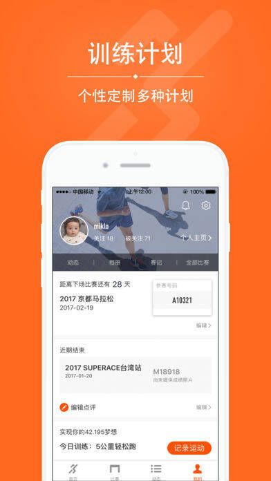 【保存完整比赛训练记录的个人主页】记录每一次比赛和训练打卡情况,形成专属跑步运动页面,用户还能在打卡时发布心情文字和照片贴图动态。