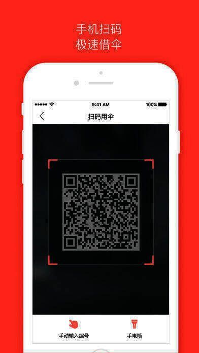 2、通过「借把伞」App 扫码开锁借伞,整个借伞过程快速高效,秒开秒取,开锁后拿走雨伞便可使用。