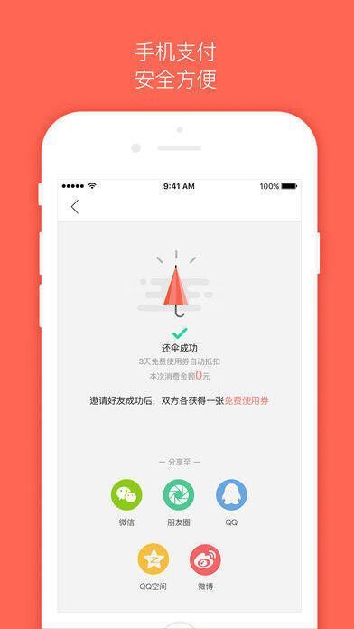 【经济实惠】每次使用可免费24小时,还有延迟还伞功能,延长免费使用时长。