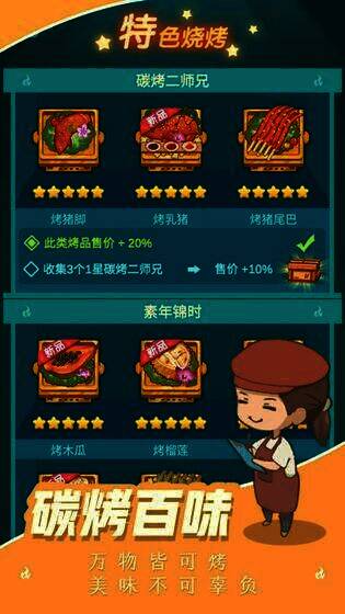 3、食材种类丰富,完成任务可解锁更多食物,充实烧烤经营体验。
