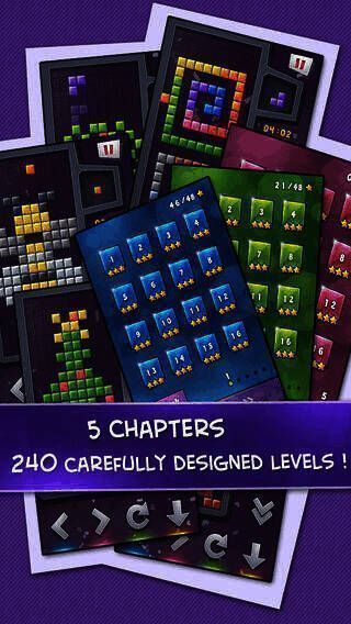 2. 挑战模式:在规定时间内将方块消到绿色安全线以下,用时越短获星越多、创纪录机会越大。关卡分五个世界共 240 关,难度逐步提升。