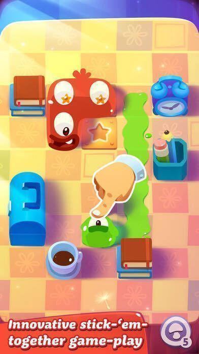 3、离开桌子,走出房子,来到城市,通过滑动将布丁怪兽粘在一起,拯救它们的伙伴。