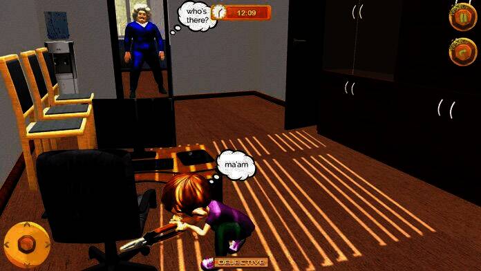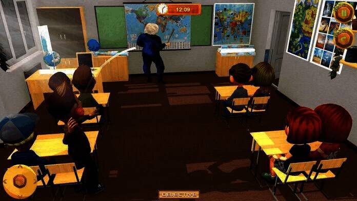 总共设置 3 个不同教室,在教室和学校里找道具,摆脱老师的惩罚。
