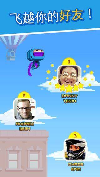 2、跳跃过程中会遇到一些障碍物,比如盖楼的吊钩、戴着竹蜻蜓飞行的其他忍者。玩家不能让自己的忍者碰到任何障碍物,否则就会失败。