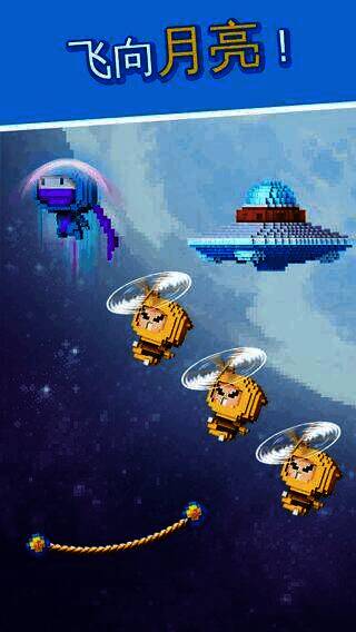 1、游戏中,玩家只需在屏幕上任意划线,划动之处就会出现一条弹簧绳子,作为忍者向上跳跃的垫脚石,让忍者持续往上跳。