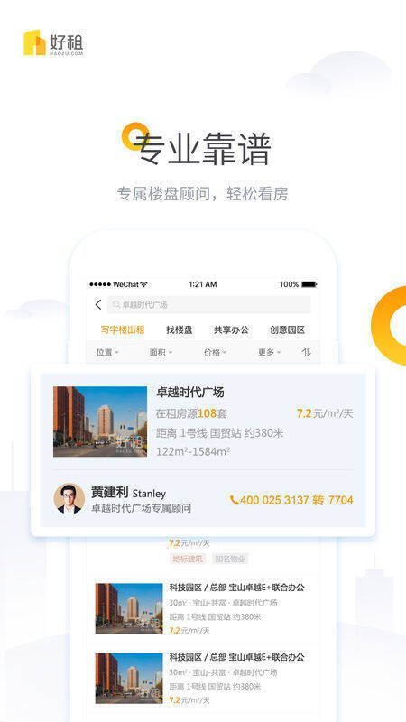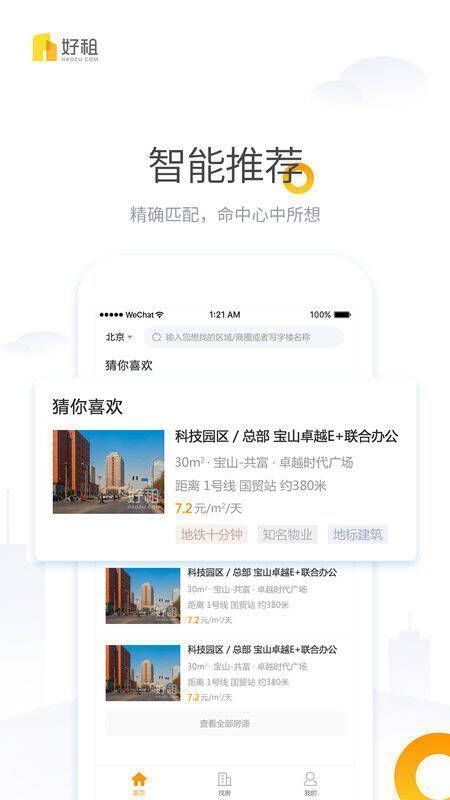 好租网是为企业提供办公租赁的专业互联网服务平台,已开通北上广深等9个城市,拥有超80万的房源数据和30万以上的客户资源。好租APP经过两年数据积累,深入研究提升找房沟通效率的方法,解决找房信息不透明问题,将传统找房依赖经验的方式转移到线上,为客户找房提供多方位决策辅助。