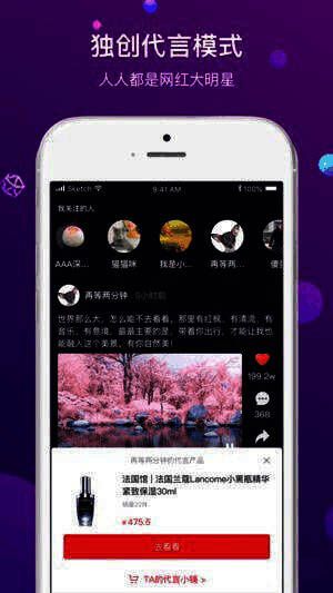 2、独创代言商品模式,让人人都能成为网红大明星,视频能创造更多价值。