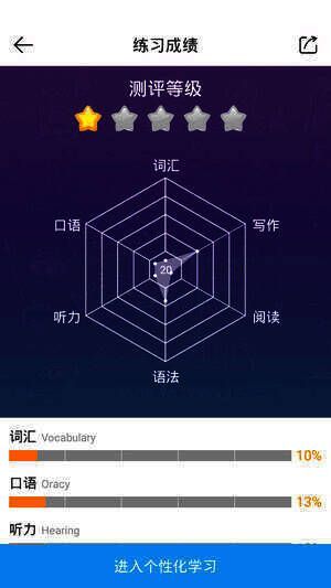 说说英语app的智能测评是分析学习大数据的人工智能自适应学习系统。它通过在线测评六大全真考点版块,利用学习轨迹和数据,结合智能技术,精准捕捉学生知识盲区,针对薄弱环节智能推送相关题目,减轻学习负担,避免无效重复学习,让考试提分变得轻松。