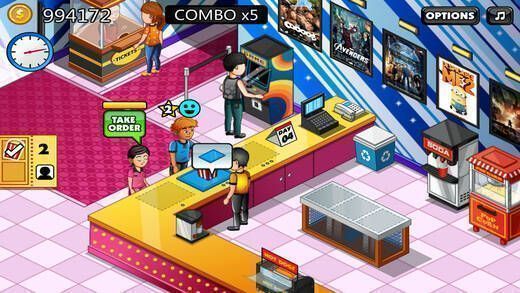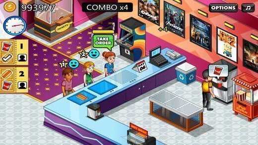2、餐厅位于电影院内,不仅提供快餐,里面还设有游戏机,顾客在候场看电影时能玩游戏消遣。