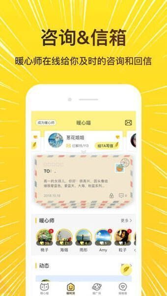 《解忧暖心喵》设有可畅所欲言的心事门、类似“解忧杂货铺”的解忧信箱、近乎免费的公益心理咨询,还有各类趣味性格测试等资源。在这里,你会发现身边有和你有同样困扰的伙伴,也有愿意陪伴并帮你分担的人。