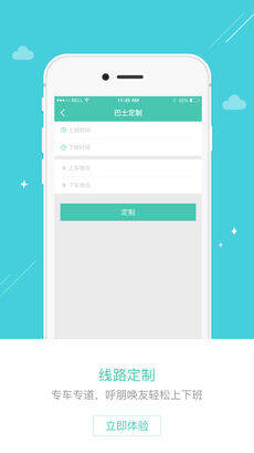 【专属线路,自主定制】支持个人发起班车线路和乘坐时间,召集同路线的小伙伴一起申请定制路线,达到额定人数即可开启专属巴士,和朋友一起坐巴士上下班。