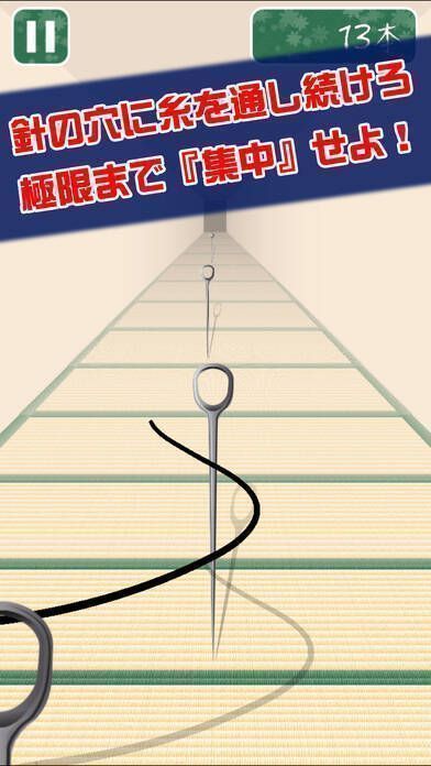 玩法:轻点屏幕让线左右移动,同时使线穿过针孔。