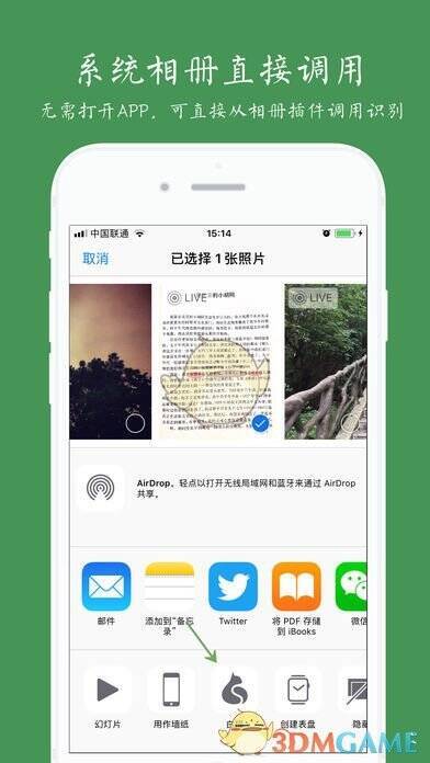 1、支持系统相册插件识别,无需打开APP就能快速完成识别。