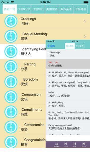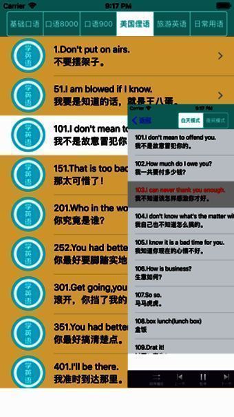 英语口语支持文本音频同步朗读,可点击句子发音、设置单句循环和定时播放,学习时间完全由自己掌控。即便锁屏之后也能继续播放,更多精彩等你下载体验。