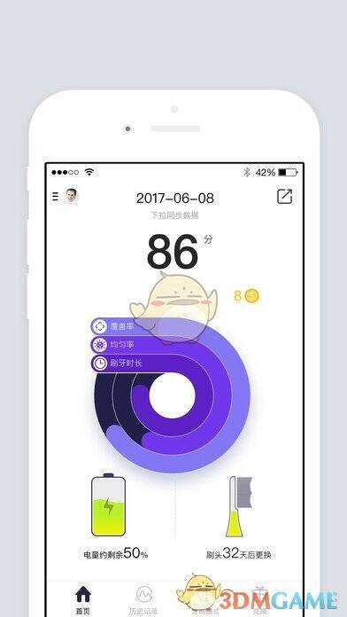 分数信息:用户同步数据后,可查看每次刷牙的时间、清洁度和刷牙方式,进入刷牙详情还能了解更多刷牙信息。