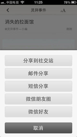 4、若想让好友看到某篇诡事或灵异事件,或者想跟Ta开个玩笑,可用分享功能;