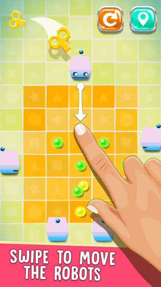 1、游戏机制简单,容易上手。2、画面清新可爱。3、考验逻辑思维。4、合理规划机器人顺序。5、80个精心设计的关卡。