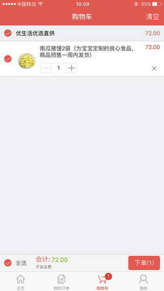 1、打开优生活,手指轻轻一划就能轻松抢购商品,只需坐等收货。