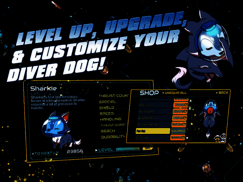邪恶的 ROCKTOPI 绑架众多小狗并带到海底,Sharkie 和 DIVER DOGS 要及时出手拯救!这是 GoNinja 和 ShaqDown 开发者带来的全新流动装置动作竞赛游戏,玩家可成为海底飘移大师,拯救被俘小狗。