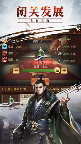 进行封地建设,通过攻城略地获取更多城池领地,还能开启更多可招募的武将。