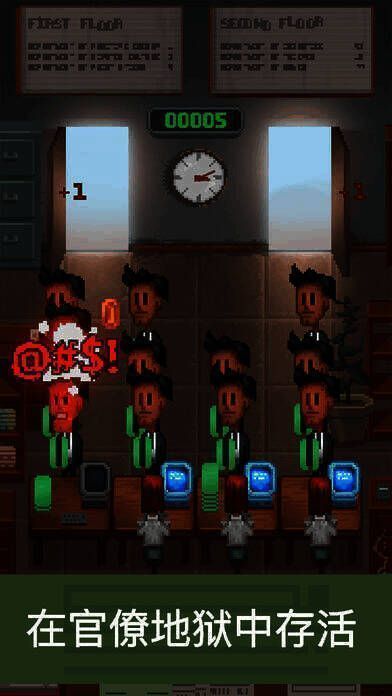 这是一款具有黑色幽默风格的游戏,场景设定在各种高峰时期的服务场所,比如办事大厅。